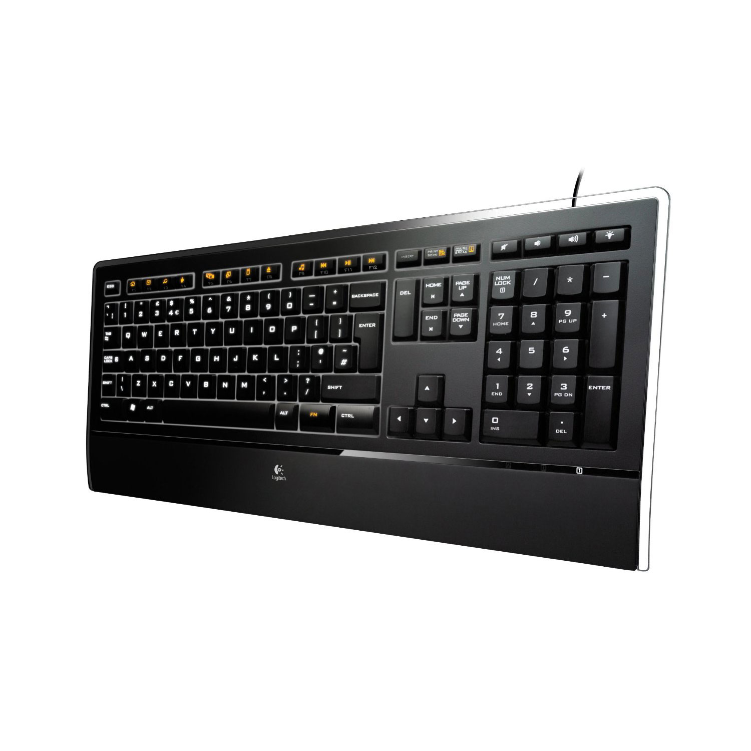 Objectivement c’est un excellent clavier. Sinon je n’aurai pas pris le même pour mon domicile. Il a tout d’un grand, ça reste du Logitech (même si je trouve qu’ils ont perdu en qualité depuis quelques temps déjà), il est robuste, beau, filaire, pavé numérique, rétroéclairé, la touche Supp est très longue donc très facile à chopper, il est silencieux et possède un repose-poignet.