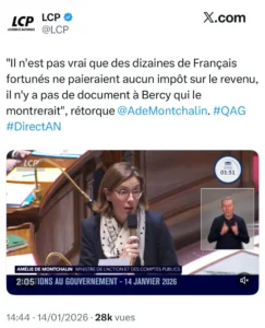 Rappelez vous les paroles d’Amélie de Montchalin : Il n’est pas vrai que des dizaines de Français fortunés ne paieraient aucun impot sur le revenu, il n’y a pas de document à Bercy qui le montrerait »